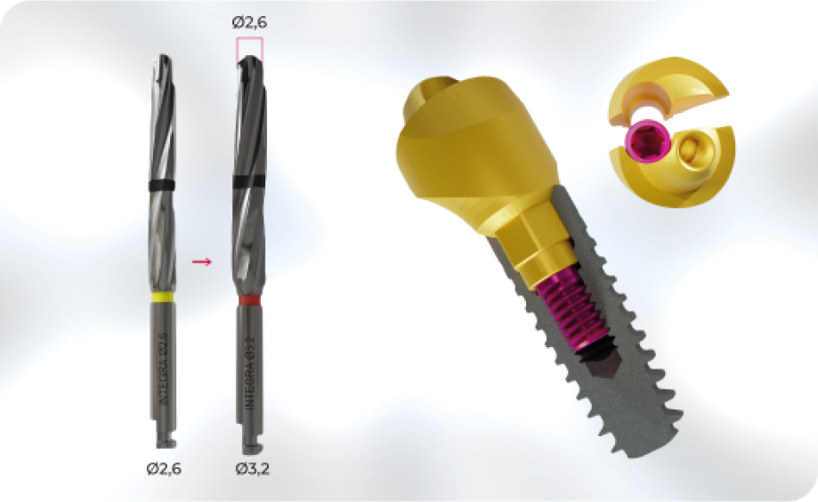 Zoptymalizowane narzędzia i intuicyjne rozwiązania jak łączniki kątowe czy wiertła z pilotem, które ułatwiają procedurę implantacji i skracają zabiegu.